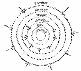 << VisszaSzellemi hierarchiák és tükröződésük a fizikai világban (5)5. -- [A régi Szaturnusztól a Vulkánig terjedő fejlődés. Az Állatöv kialakulása. Egy új naprendszer tervei a Szentháromságtól származnak, megvalósításukat az első hierarchia végzi el. A Szaturnuszt a küriotészek tömörítik Nappá, ezt pedig a dünamiszok régi Holddá. A kisbolygók az égi viszály maradványai. A régi Szaturnusz a mai Szaturnuszig, a régi Nap a Jupiterig, a régi Hold a Marsig terjedt ki.] Düsseldorf, 1909. április 14. A kozmoszunkban élő magasrendű szellemi lények működését két példán mutattuk be: a régi Szaturnusz és a belőle újra megtestesült régi Nap példáján. Ma az lesz a feladatunk, hogy behatoljunk magába a szellemi világba, ahol ezek a magasrendű szellemi lények élnek és más oldalról is szemügyre vegyük működésük módját. Sok olyan dolgot is el kell mondanunk előadás-sorozatunk első felében, amit önök közül legtöbben itt vagy ott már hallottak. De eltekintve attól, hogy jó néhány olyan hallgató is van itt, aki sok mindent nem hallott még abból, ami az előadások megértéséhez szükséges, éppen, mert ebben a ciklusban a szellemi élet igen magas régióiba kell felemelkednünk, szükség van rá, hogy újra megemlítsük mindazt, ami a megértéshez feltétlenül szükséges. Az eddig elmondottakból megtudhatták, hogy egy fejlődő világrendszer keretein belül a legkülönfélébb módon szellemi lények működnek. Mi is alapjában véve a régi Szaturnusz? Alkossunk róla pontos képzetet. A régi Szaturnusznak természetesen semmi köze sincs a mai Szaturnuszhoz. Inkább úgy képzeljék el, hogy a régi Szaturnuszban már csírájában benne volt mindaz, ami mai naprendszerünkhöz tartozik: Napunk, Holdunk, Merkurunk, Vénuszunk, Marsunk, Jupiterünk; mindezek az égitestek benne voltak a régi Szaturnuszban és belőle alakultak ki. Gondoljanak el tehát egy olyan égitestet, amelynek középpontjában a mai Nap állna és odáig terjedne, hogy még a mai Szaturnusz is benne volna; ekkor volna helyes képzetük a mai naprendszerünknél nagyobb régi Szaturnuszról. Úgyszólván tehát egész naprendszerünk ebből a régi Szaturnuszból keletkezett. Ha nem is teljes mértékben, de megközelítőleg ahhoz a Kant-Laplace-féle világ-ősködhöz[1] hasonlíthatnánk, amelyből sok modern ember nézete szerint naprendszerünk kifejlődött. De a hasonlat nem teljesen helytálló, mert legtöbben úgy gondolják, hogy naprendszerünk kiindulópontja bizonyosfajta gáz volt, pedig láttuk, hogy nem gáztest, hanem hőtest volt. A régi Szaturnusz nem más, mint egy óriási hőtest. Azt is elmondtuk tegnap, hogy ott, ahol ennek a régi Szaturnusznak átalakult utódját, a régi Napot találjuk, környezetéből, az univerzumból befelé hatnak a kerubok. Úgy kell elképzelniük, hogy ezek a kerubok, akik a régi Nap környezetében működnek, megvoltak már a régi Szaturnusz környezetében is. Csak, mondhatnánk, még nem kapták meg a felhívást a működésre; triviális kifejezéssel élve, még nem jött el az idejük, hogy valami jelentőset tegyenek, de már ott voltak a régi Szaturnusz környezetében is. Más lények is jelen voltak a régi Szaturnusz körül, akik még a keruboknál is magasztosabb lények osztályához tartoznak: a szeráfok. Ugyanehhez a régióhoz tartoznak a trónok is. Csakhogy a keruboknál egy fokkal lejjebb álló trónok szubsztanciája úgyszólván leárad és a Szaturnusz hőszubsztanciáját képezi, amint azt elmondtuk. Ezek szerint tehát ezt a régi Szaturnuszt úgy képzelhetjük el, mint egy óriási hőgömböt, amelyet igen-igen magasztos szellemi lények körtánca vesz körül. A keresztény ezotéria értelmében trónoknak, keruboknak és szeráfoknak nevezzük őket. Ők a keleti tanok dhyáni lényei. Azt kérdezhetnénk: honnan származnak ezek a magasztos lények? Minden a világon, mindaz, ami a világmindenségben létezik, fejlődés utján jött létre. S ha képzetet akarunk alkotni arról, hogy honnan jöttek ezek a kerubok, szeráfok és trónok, akkor legjobb, ha először saját naprendszerünket vizsgáljuk meg és megkérdezzük, mi lesz majd egykor naprendszerünkből? Vázoljuk röviden naprendszerünk fejlődését. Tudjuk, hogy a régi Szaturnuszból indult ki, ez a régi Szaturnusz azután átalakult régi Nappá, ez pedig a régi Holddá. Abban az időpontban, amikor a régi Nap Holddá válik, sajátos fejlődés következik be. Először történik meg, hogy a Hold kiválik a Napból, először jön létre olyan égitest, amely a Napon kívül van. A Nap magasabbra tud fejlődni azáltal, hogy a legdurvább elemeket kilöki magából. Azután ebből az egész rendszerből kifejlődik mai Földünk rendszere. Földünk azáltal jön létre, hogy egyebeken kívül a Hold és a Föld, mint a durvább anyagok és durvább lények hordozói, kiválnak a Napból. De a fejlődés továbbmegy. Azok a lények, akiknek most a Földön elkülönülve kell élniük, akiket úgyszólván kidobtak a Napról, ezek a lények a Naptól elkülönített állapotukban egyre magasabbra fejlődnek. Még egy állapoton - a Jupiter-állapoton - kell átmenniük. De ezáltal lassankint éretté válnak arra, hogy ismét egyesüljenek a Nappal. S amikor eljön a Vénusz-fejlődés állapota, az összes lényt, aki csak ma a Földön él, újra felveszi a Nap, amely akkor már maga is a fejlődés magasabb fokát érte el éppen azáltal, hogy lényeit, akiket egykor kitett magából, újra visszaváltotta. Ezután következik a Vulkán-fejlődés, rendszerünk fejlődésének legmagasabb foka. Mert rendszerünk fejlődésének hét fokozata van: a Szaturnusz, Nap, Hold, Föld, Jupiter, Vénusz és Vulkán. A Vulkán-fejlődés fokán a szaturnuszi lét parányi kezdetéből létrejött összes lény a szó legmagasabb értelmében szellemivé v