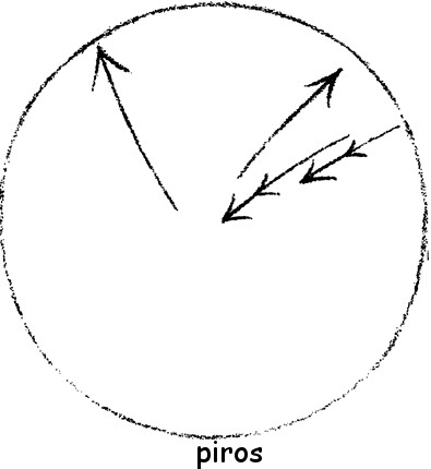 Ily módon a fény és a nehézkedés két kozmikus ereje a kozmosz nagy ellentétét jeleníti meg. A fény és a nehézkedés tulajdonképpen kozmikus ellentétet képez. Ha elképzelik a bolygókat: a nehézkedés a középpont felé húz, a fény a középponttól távolodva a világmindenség felé (nyilak). A fényt csak nyugalomban képzeljük el. Valójában távolodik a bolygótól. Aki a nehézkedést Newtont követve vonzóerőnek képzeli, voltaképpen meglehetősen materialista módon gondolkodik, mivel úgy képzeli, hogy a Földben valamilyen démon vagy ahhoz hasonló ül, és egy láthatatlan kötéllel húzza magához a követ. Hiszen vonzóerőről beszélnek, ami azonban kizárólag a képzeletben jeleníthető meg. Mégis beszélnek róla. Érzékelni nem lehet ugyan, de Newton nyomán mégis beszélnek vonzóerőről. A nyugati kultúrában már csak úgy van, hogy ami egyáltalán létezik, azt valahogy érzékelhetőnek kell elgondolni. Valaki azt mondhatná tehát: ha a vonzóerőt láthatatlan kötélnek képzelitek, akkor a fényt valami elemelkedésnek, eltávolodásnak kell elképzelnetek. A fényt akkor eltávolító erőnek kellene elképzelni. Aki meg akar maradni a realitásnál, az megelégszik azzal, hogy egyszerűen belátja a fény és a nehézség kozmikus ellentétét. Amit most elmondtam, azon sok minden múlik az ember vonatkozásában. Az elalvás és felébredés mindennapos jelenségéről azt mondjuk: elalváskor az ember a nehézkedés területéről a fény területére távozik. Amikor a fény területén él, és elég sokáig élt nehézkedés nélkül, élénk vágyakozást érez, hogy a nehézkedés újra átjárja, visszatér hozzá, felébred. Élete állandóan a fény és a nehézkedés között ingadozik, elalszik, felébred. Akinek az érzelmi képességei finomabban fejlettek, közvetlenül, személyesen élményként élheti át, hogy elalváskor a nehézkedésből a fénybe emelkedik, ébredéskor pedig újra a nehézkedés keríti hatalmába.