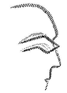 Megint csak felhívták a tanítvány figyelmét arra, hogy a fejében levő látóidegben, vagyis a szembe belépő látóideg harmincas tagoltságával a gerincoszlop holdorganizációját másolja le. Az agyvelőből tizenkét ideg indul ki. De ha az agyvelőnek különösen azt a részét vizsgáljuk, amely a szaglóideget küldi az orrba, akkor kiderül, hogy az agyvelőnek ez a kis részlete lemásolja az egész nagy agyvelőt. Ahogy a szem leképezi a gerincvelő idegrendszerét, úgy a szaglószerv az egész agyvelőt másolja le, amennyiben a szaglóideg tizenkét részben, tizenkét rostban halad az orrhoz. Ha tehát a gerincvelő és a fej itt helyezkedik el (lásd a következő rajzon), akkor egy valóságos kis ember van itt elől.