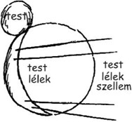 Amit ma bemutattam, azt úgy is kifejezhetjük, hogy azt mondjuk: ha az egész, a teljes embert nézzük, ahogy előttünk áll a világban, először is végtag-emberként, akkor, szellem, lélek és test szerint mutatkozik meg nekünk. Ha mellkas-emberként tekintünk rá, úgy lélekként és testként mutatkozik meg. A nagy gömb (lásd a legutóbbi rajzot): szellem, test, lélek; a kisebb gömb: test, lélek; a legkisebb gömb: pusztán test. A 869. évi zsinaton142 a katolikus egyház püspökei megtiltották az emberiségnek, hogy tudjanak valamit a nagy gömbről. Kinyilvánították akkor a katolikus egyház dogmájaként, hogy csak a középső és a legkisebb gömb létezik, hogy az ember csak testből és lélekből áll, hogy a puszta lélek a tulajdonságai szerint tartalmaz valami szellemit; a lélek egyfelől szellemszerű is. A szellem a 869. évtől fogva a nyugati világ katolicizmusból kiinduló kultúrája számára nem létezik többé. A szellemhez való kapcsolódás megszüntetésével azonban az embernek a világgal való kapcsolatát is megszüntették. Egyre inkább egoizmusba kergették. Ezért maga a vallás is egyre egoisztikusabbá és egoisztikusabbá vált, ma pedig egy olyan korban élünk, ahol úgymond a szellemi megfigyelésből kiindulva újra meg kell ismernünk az ember kapcsolatát a szellemmel és ez által a világgal.
